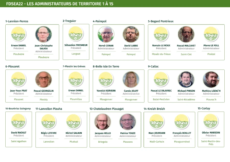 Les administrateurs de territoire 1 à 15 des côtes d'armor